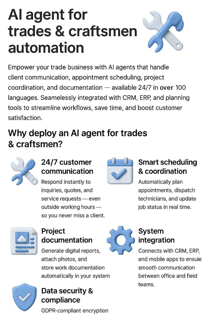 Small and mid-size trade businesses often lose revenue to slow lead follow-up, inefficient dispatch, manual paperwork and missed appointments. Paper processes and reactive scheduling increase travel costs and reduce billable hours.